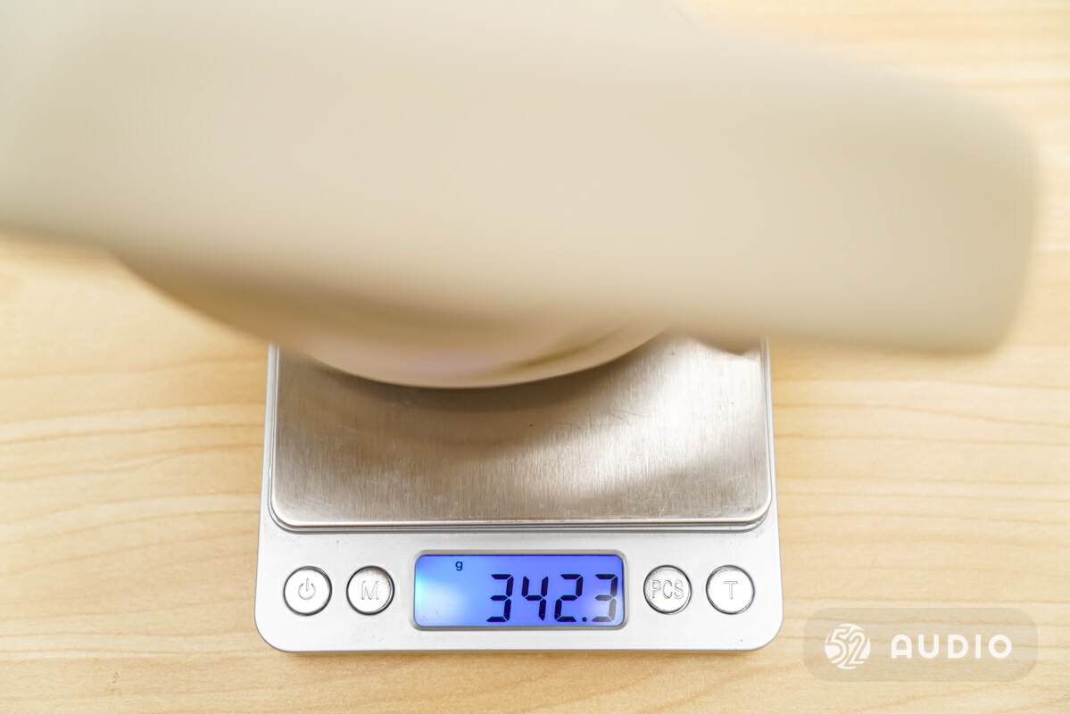 高精度秤显示,Yamaha雅马哈YH-E700B耳机的实际重量为342.3g,在头戴式耳机中,整体重量还是比较有分量感的。
