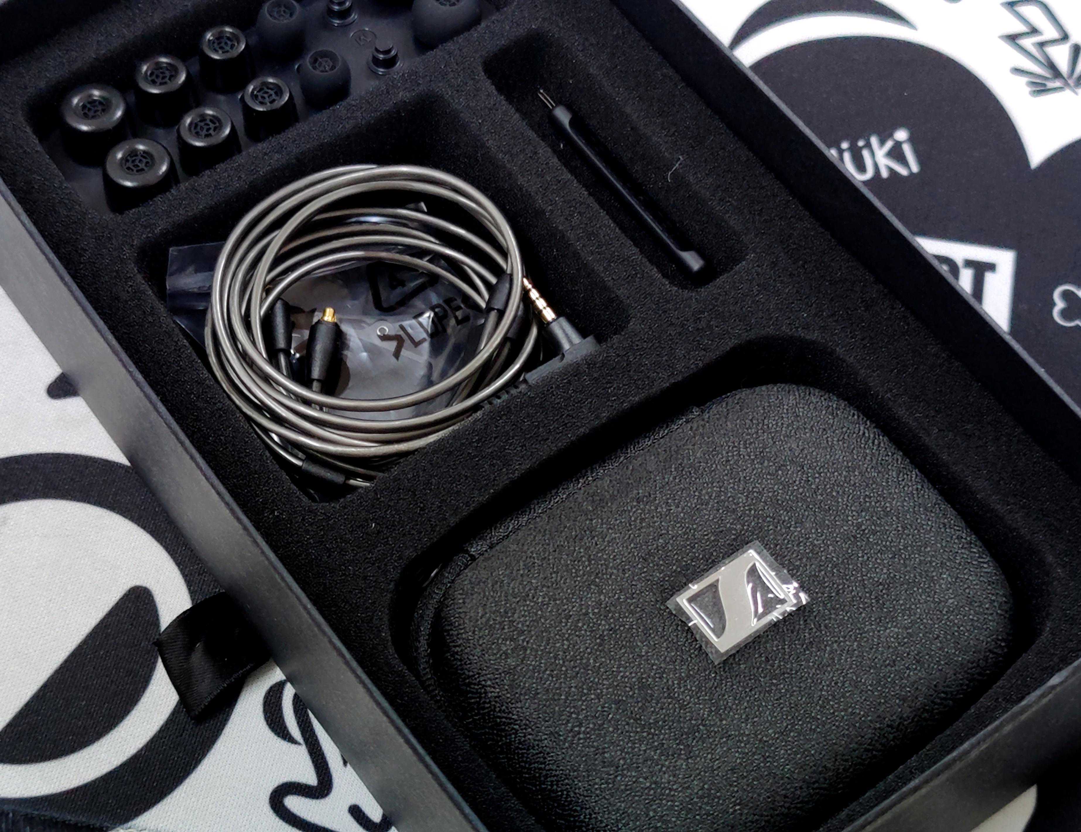 至于这两款耳塞随机搭配的线材应该是基本一致,除了标配的4.4平衡线以外,收纳盒内的弹性尼龙绑带下配有3.5单端线材,这点很是显摆大厂的服务周到和人性操作,给予点赞!