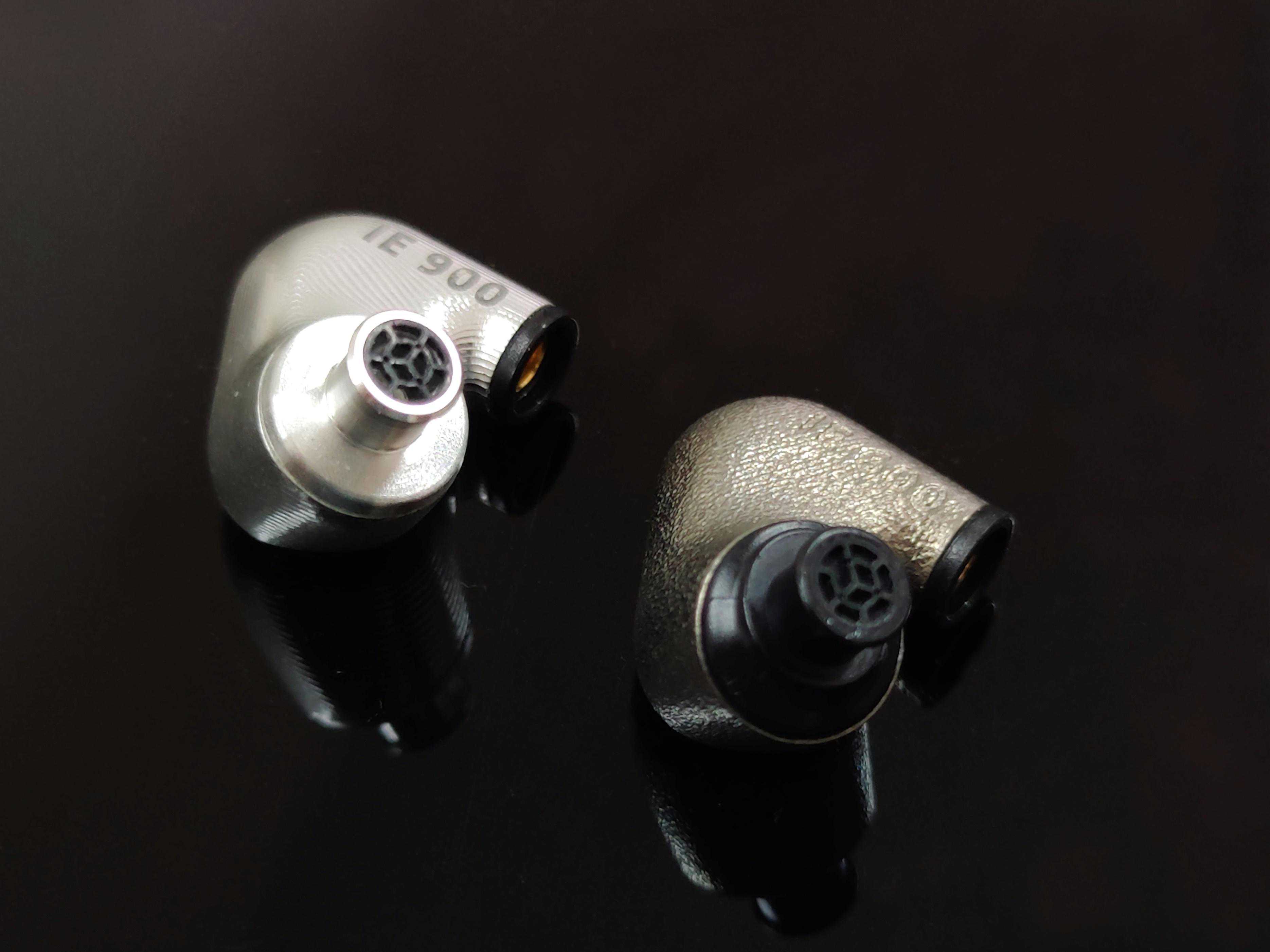 现在重点从这两款塞子的耳机腔体工艺来比较:首先价格相差近一半的两个设备肯定不比较大家跟我一样都偏爱IE900,的确如此:IE900那整体铝合金精密切削工艺加上富有艺术质感的平行纹理拉丝装饰条使得整个腔体既牢固又美观,这种金属材质的其中一个好处在于不会像表面亮光工艺那样变成指纹收纳器,也不会因为稍微磕碰或者摆放不当造成外壳上的磨损或者划痕,使得尽管高端奢华,但是也不会让我们整天为了保护耳机而过度呵护,正所谓耳机应该为我们提供更为便捷而简单的服务!