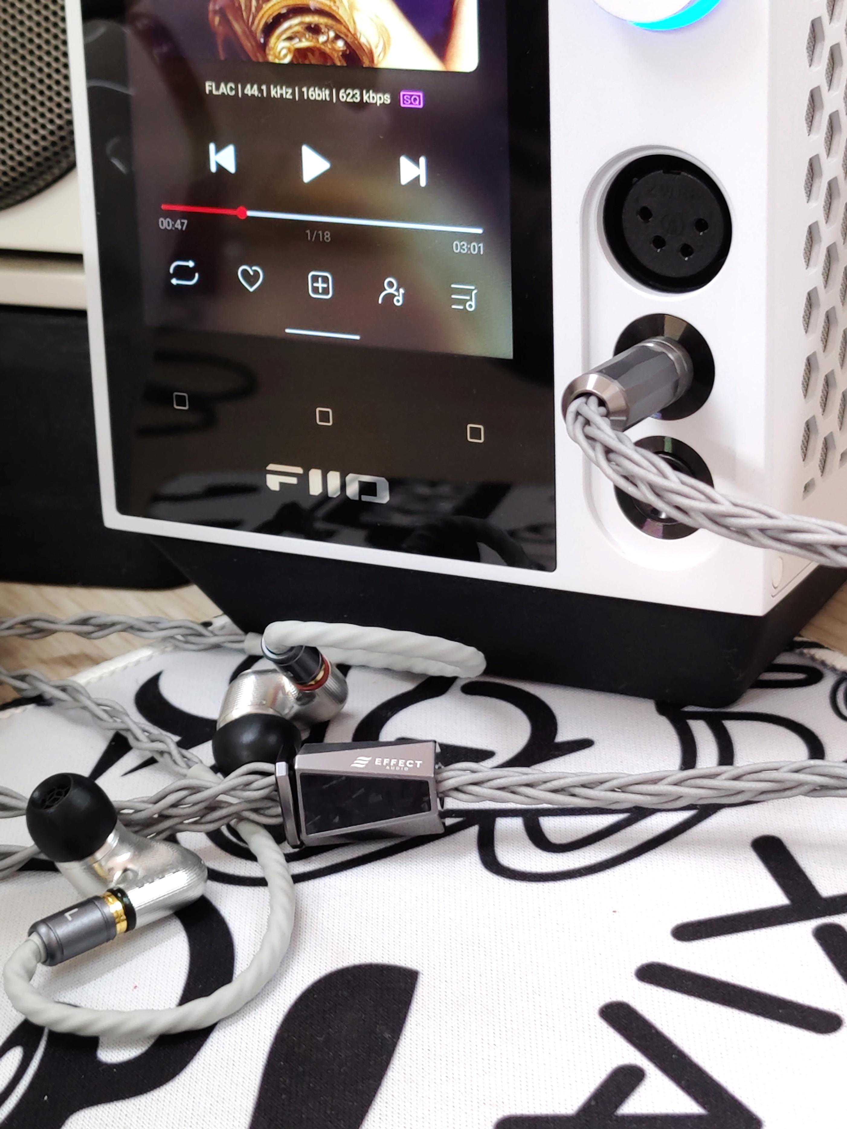 飞傲M15当转盘,搭配ifigryphon解码耳放一体机,借助强大的推力可以发挥把这两款塞子的潜力给发挥出来,通过比对:飞朵阿缇米斯基本在解码耳放一体机音量75左右即可推到非常满意的程度,音量再高就会有过推的可能性存在!相比之下,IE900在解码耳放一体机90乃至以上的音量前提下,在具体的器乐表现方面,IE900的表现更有意思一些,拥有优秀的细节和相对精准的结像位置,这些是非常类似现代森海塞尔的70%监听+30%流行综合调音风格的,高素质。但是在低频声部的部分又拥有着非常出色的量感和包围感。并且低频总有一种在崩溃边缘而又从来不会失控的位置,这种听感是非常有趣并且过瘾的。而解析、结像、透明度和低频的量感和包围感又并不冲突,可以同时得到,这可以说是目前耳塞中非常少见的了。飞朵阿缇米斯相对而言在小音量的听音环境下,显得更为讨好耳朵,因为相对IE900,她对于前端播放器和解码耳放一体机的素质要求并不像IE900那么高那么苛刻!而这时候各位烧友会问:开启ifigryphon看家本领的XBass+XSpace音效如何?我可以借此机会说:开启音效对于这两款素质极高的旗舰耳塞那是“多余”两个字!