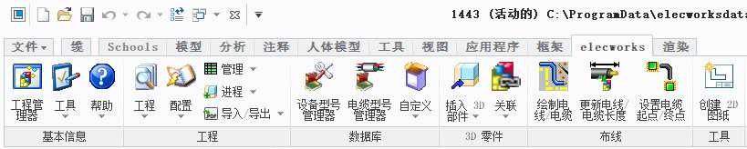 2.进入Creo界面,elecworks菜单,可通过“工程管理”菜单直接进入上述的电气项目。
