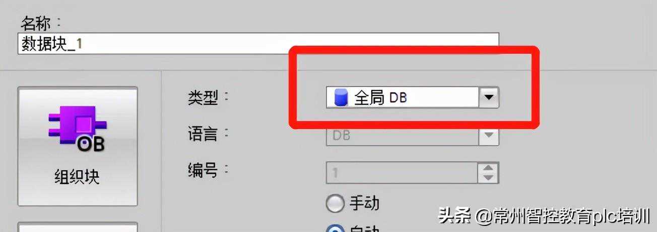 创建数据块的时候,在类型处,会默认该数据块为全局DB。