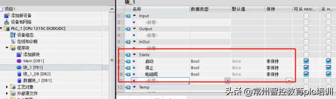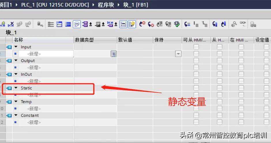 3、在FB中可以定义静态变量(图1-6),当数据块建立完成并且已经被保留了几个循环之后,存储的本地静态数据不会丢失,除非数据再次被更改。