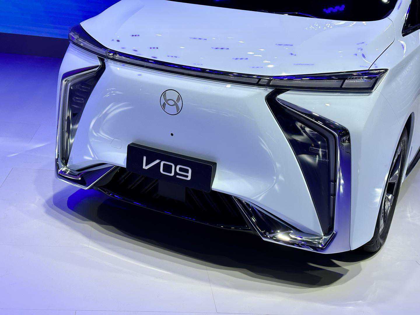 合创V09在2023上海车展上正式亮相,其前脸部分仪式感较强,封闭式前隔栅、贯穿式日行灯和底部黑色包围的组合,不仅看上去年轻,而且还带有十足的运动范儿,虽然类似的风格在市场上也有出现,但是配合淡蓝色车漆,大大削减了传统MPV带来的“油腻”感。