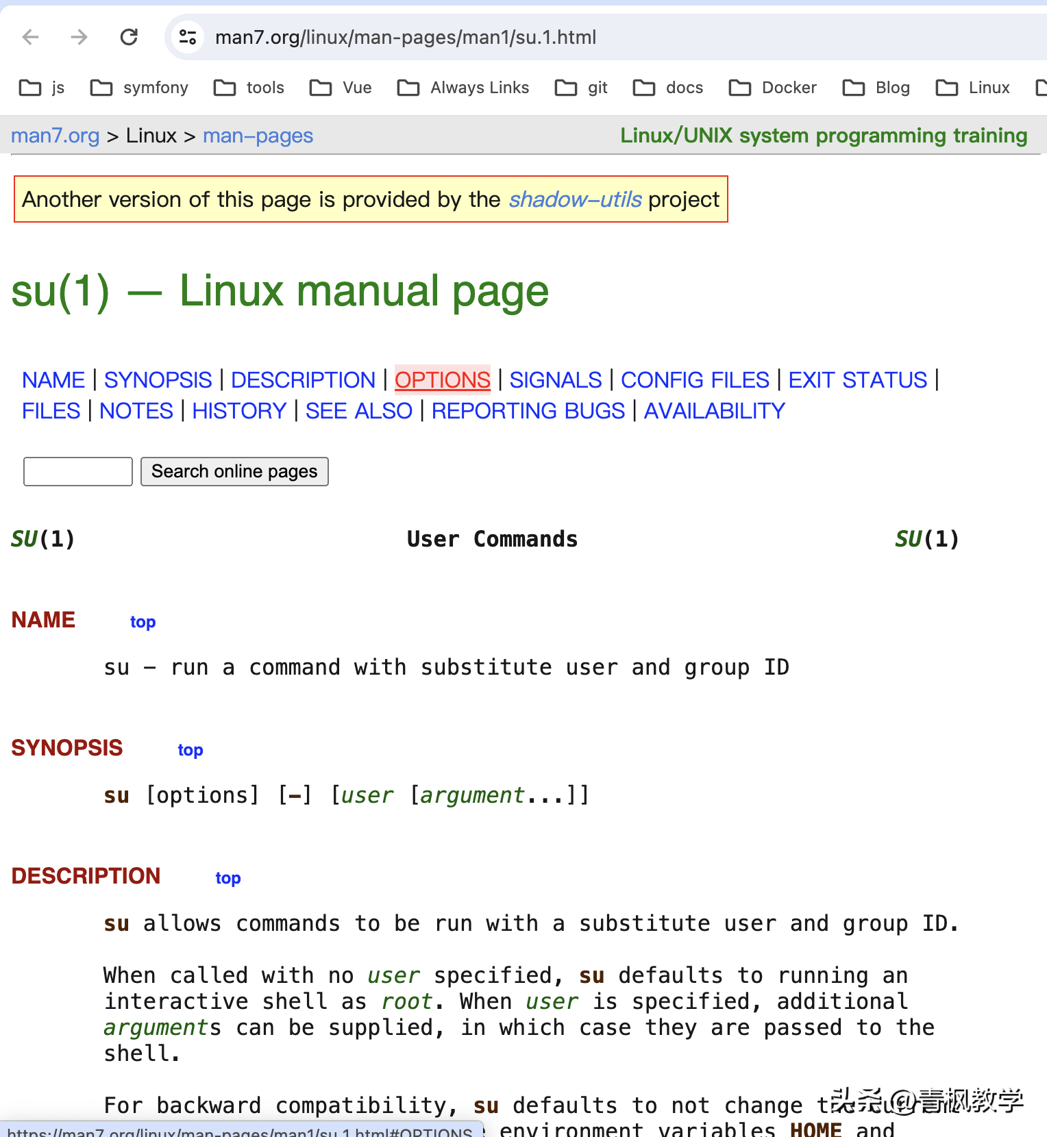 为了向后兼容,su默认不改变当前目录,只设置环境变量HOME和SHELL(如果目标用户不是根用户,则加上USER和LOGNAME)。