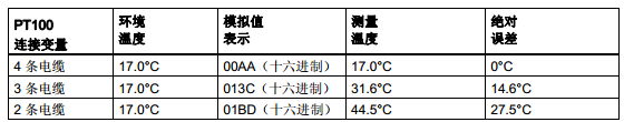 这个图片是说4线制标准PT100接入SM331模块中测量值是最好的,我在此是需要它的数据,温度17.0°C,读出的模拟值是16AA就是170,所以西门子中PT100接入的时候也是存在这个10倍关系的。