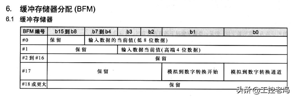 BFM17:b0位指定进行模拟到数字转换的通道(CH1,CH2)。为0时是CH1,为1时是CH2,b1位从0变成1时代表A/D转换过程开始。