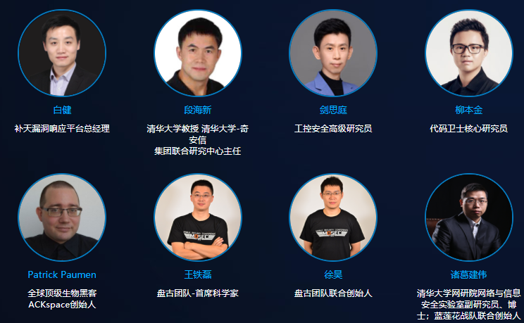 其中包括奇安信集团副总裁左英男、清华大学教授段海新、盘古团队首席科学家王铁磊、补天漏洞响应平台总经理白健、盘古团队联合创始人徐昊、工控安全高级研究员剑思庭等,以及上面提到的世界顶尖的荷兰生物黑客大神PatrickPaume。