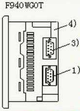(1)连接PLC端口(RS-422)9针D-sub,阴型。可以通过RS-422连接PLC,也可以通过这个端口连接两个或更多个GOT模块(F920GOT-K除外)。