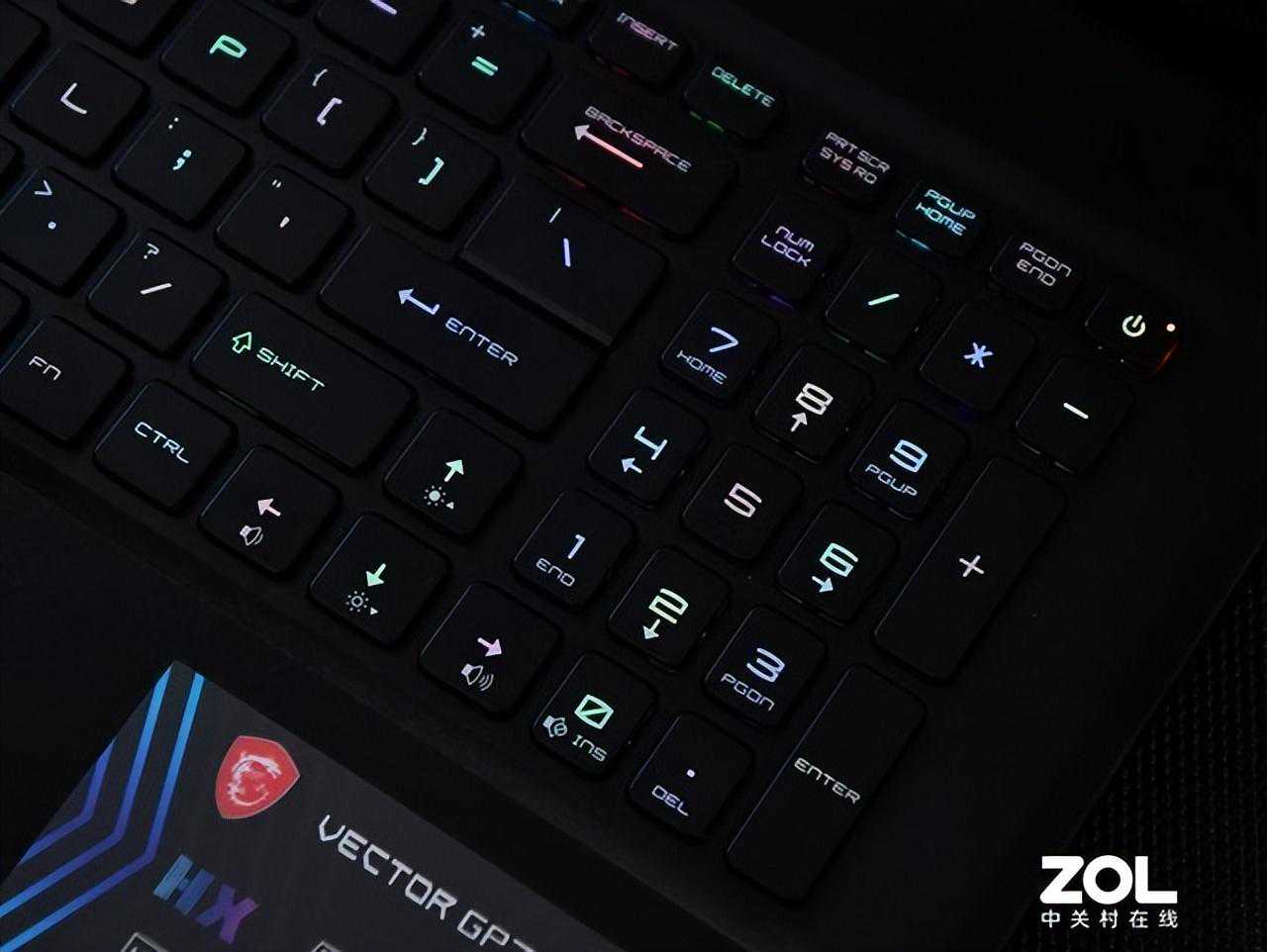 此外,冲锋坦克ProGP76HX配置了独立数字键区,更加便于用户输入数字。其方向键也并未采用半高设计,这对于游戏玩家而言还是相当重要的。