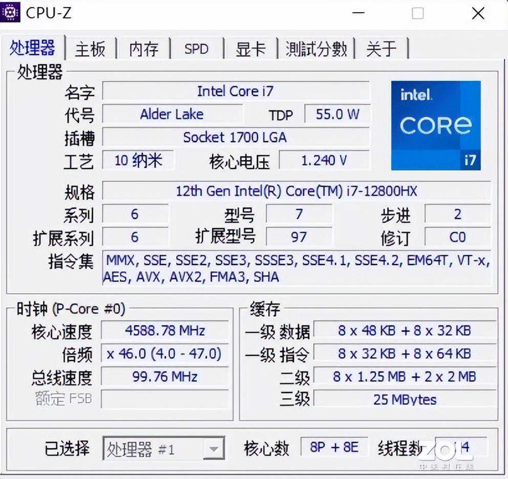酷睿i7-12800HX是目前英特尔移动级处理器中的次顶级,基于Intel7制程工艺打造,拥有16核24线程,其中8个核心为性能核心(P-Core),8个核心为能效核心(E-Core)。性能核最高睿频4.8GHz,能效核最高睿频3.4GHz,三级缓存24MB,基础TDP为55W,TDP可调范围为45W-157W。