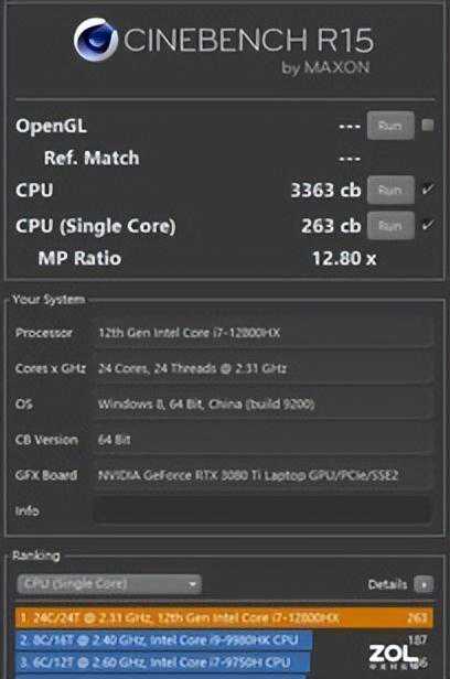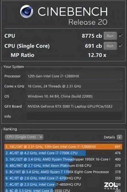 CINEBENCH测试标准中,实测CINEBENCHR15多核3363cb、单核263cb;CINEBENCHR20多核8775cb、单核691cb;CINEBENCHR23多核23061pts、单核1826pts。无论是多核还是单核,这颗处理器事实上已经超过了12代酷睿i9-12900HK性能。尤其是多核性能表现极为出色。