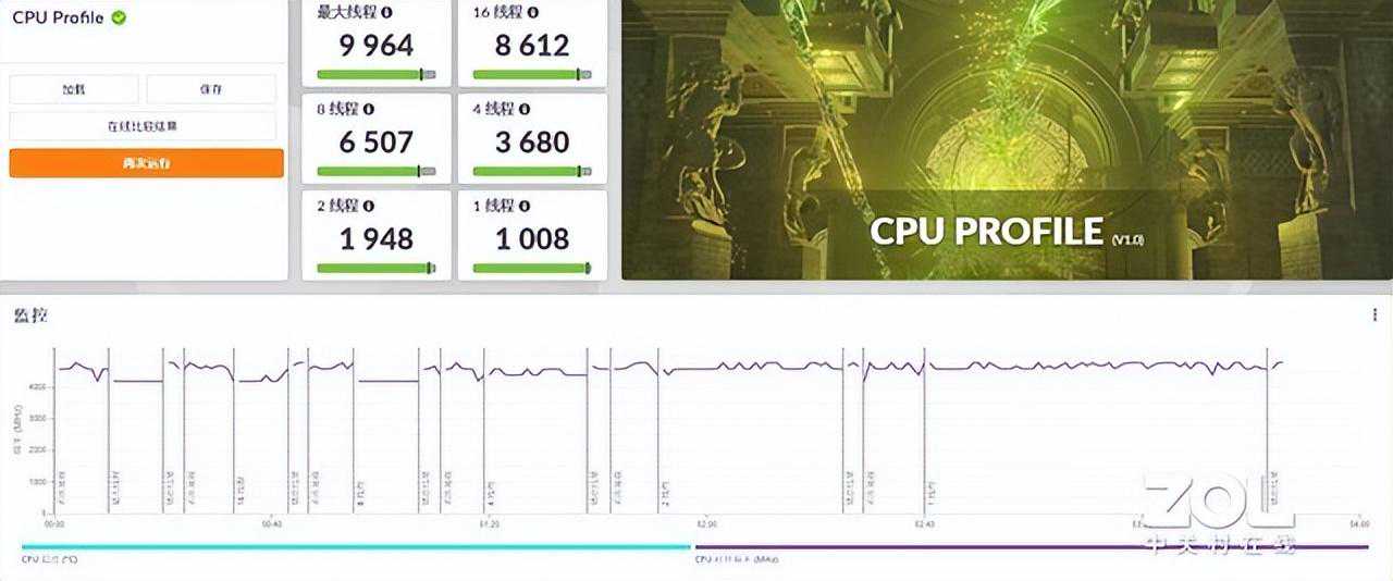3DMarkCPUProfile通过图形渲染中的物理粒子效果来评估CPU单线程到多线程性能。经过测试可以看到,酷睿i7-12800HX单线程得分1008,2线程得分1948,4线程得分3680,8线程得分6507,16线程得分8612,最大线程得分9964,性能表现强劲,冲锋坦克ProGP76HX性能释放确实是相当优异。