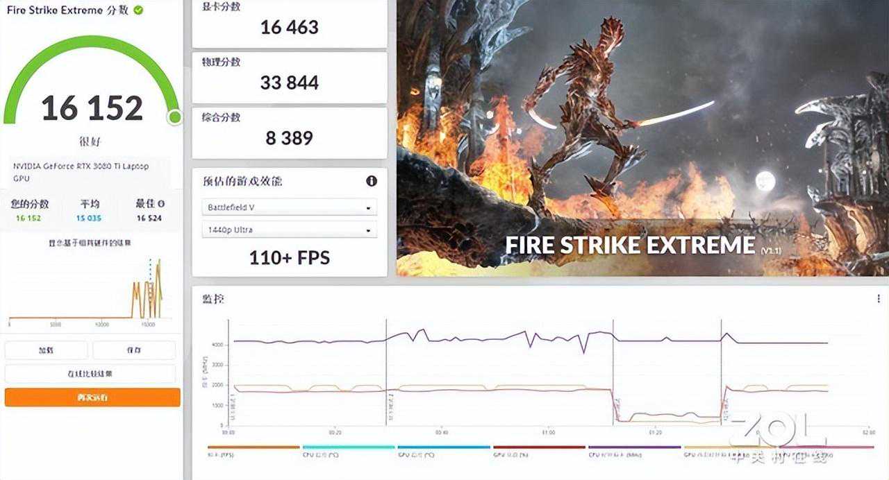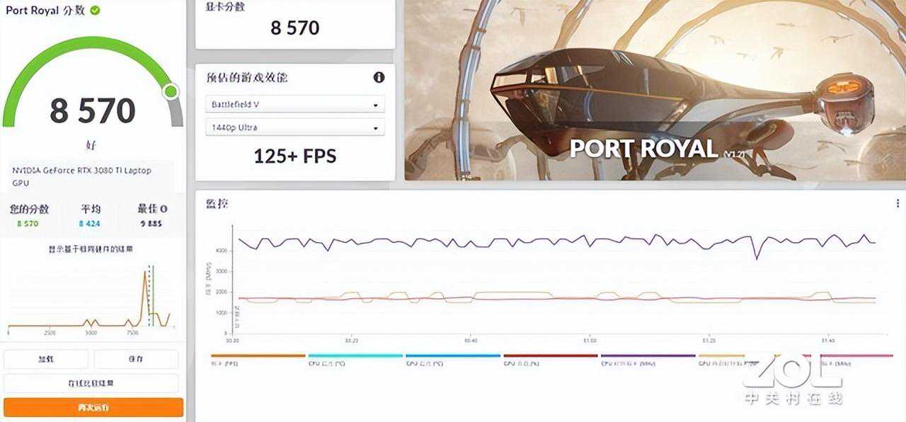 微星冲锋坦克ProGP76HX搭载的NVIDIAGeForceRTX3080Ti在PortRoyal光追性能测试中得分8570,畅玩光追游戏没有任何问题。在TimeSpyDX12测试模式中,其评分13715分,DX12性能表现出色。FireStrikeExtreme是DX11相关测试,NVIDIAGeForceRTX3080Ti评分16463分,从各项测试来看,冲锋坦克ProGP76HX在GPU性能释放上也达到了非常不错的水准。