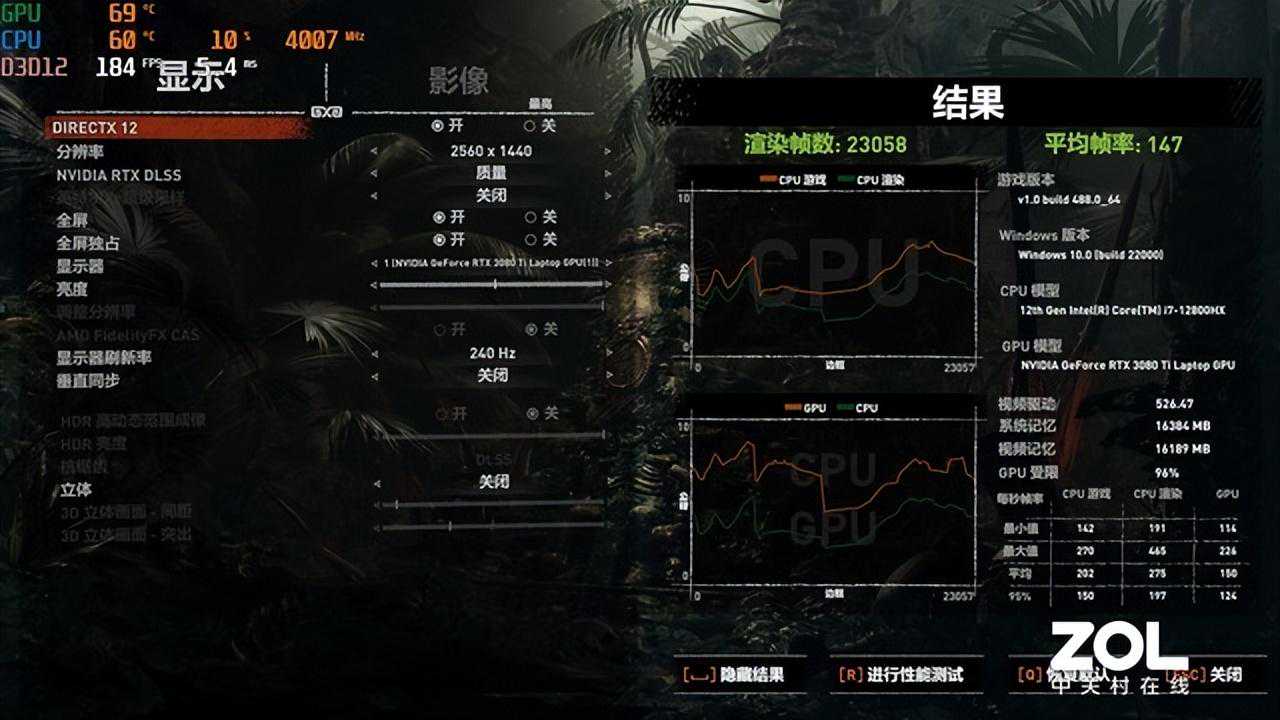 第二款游戏为《古墓丽影:暗影》,这款游戏对硬件性能要求适中,虽然是老游戏,但依旧是各大平台测试的主力游戏,所以可以有一个很好的参考。