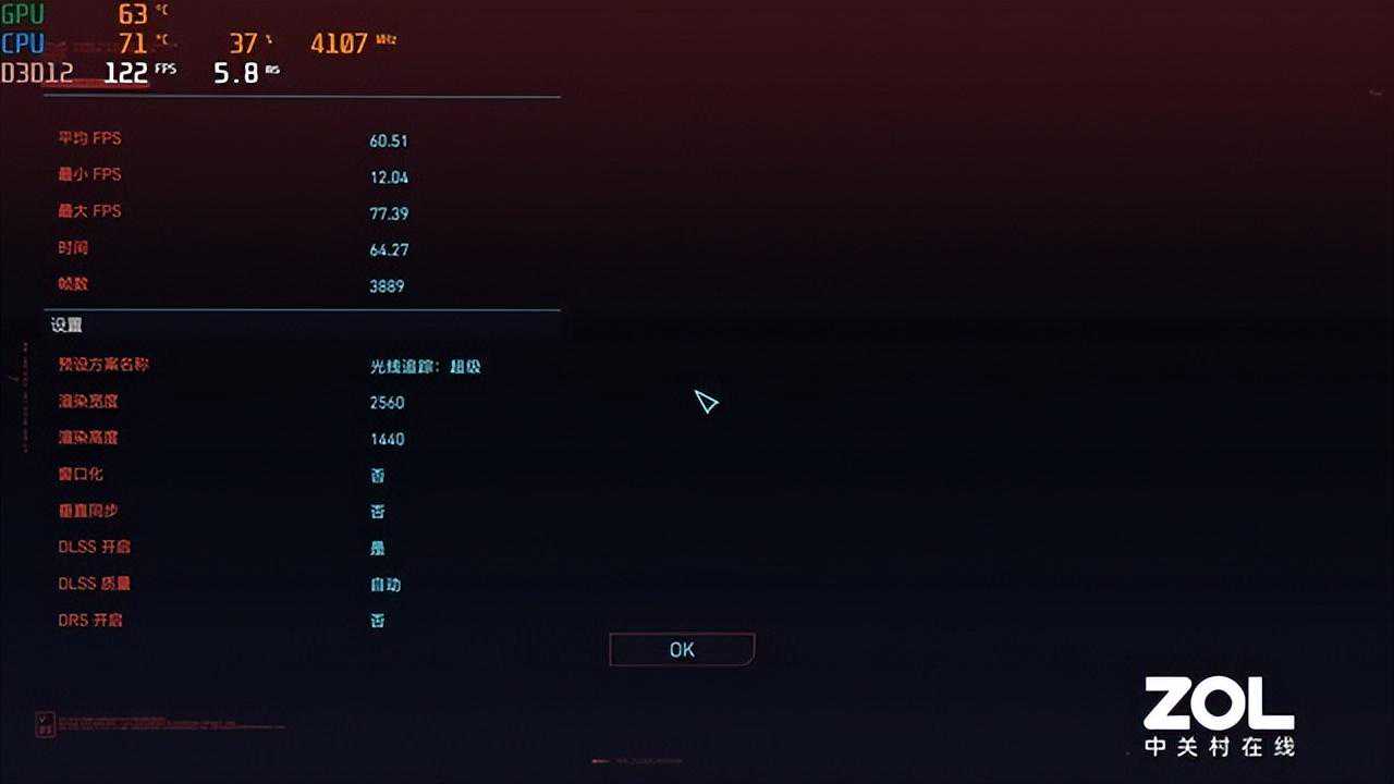 最后一款测试游戏为《赛博朋克2077》,这款游戏完美支持光线追踪,因此只有在高分辨率下开启光追特效,才能完全感受到这款游戏的魅力。而冲锋坦克ProGP76HX强悍的性能表现,自然能够给玩家带来这种完美体验。