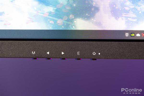 屏幕右侧底部设置5个OSD按钮,下边框对应喷涂了OSD按钮功能标识。