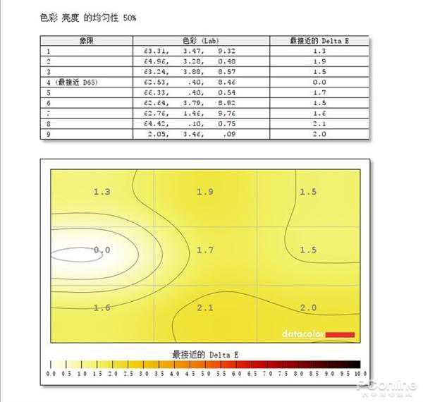 色彩均匀度表现优秀,最大△E值仅2.0。