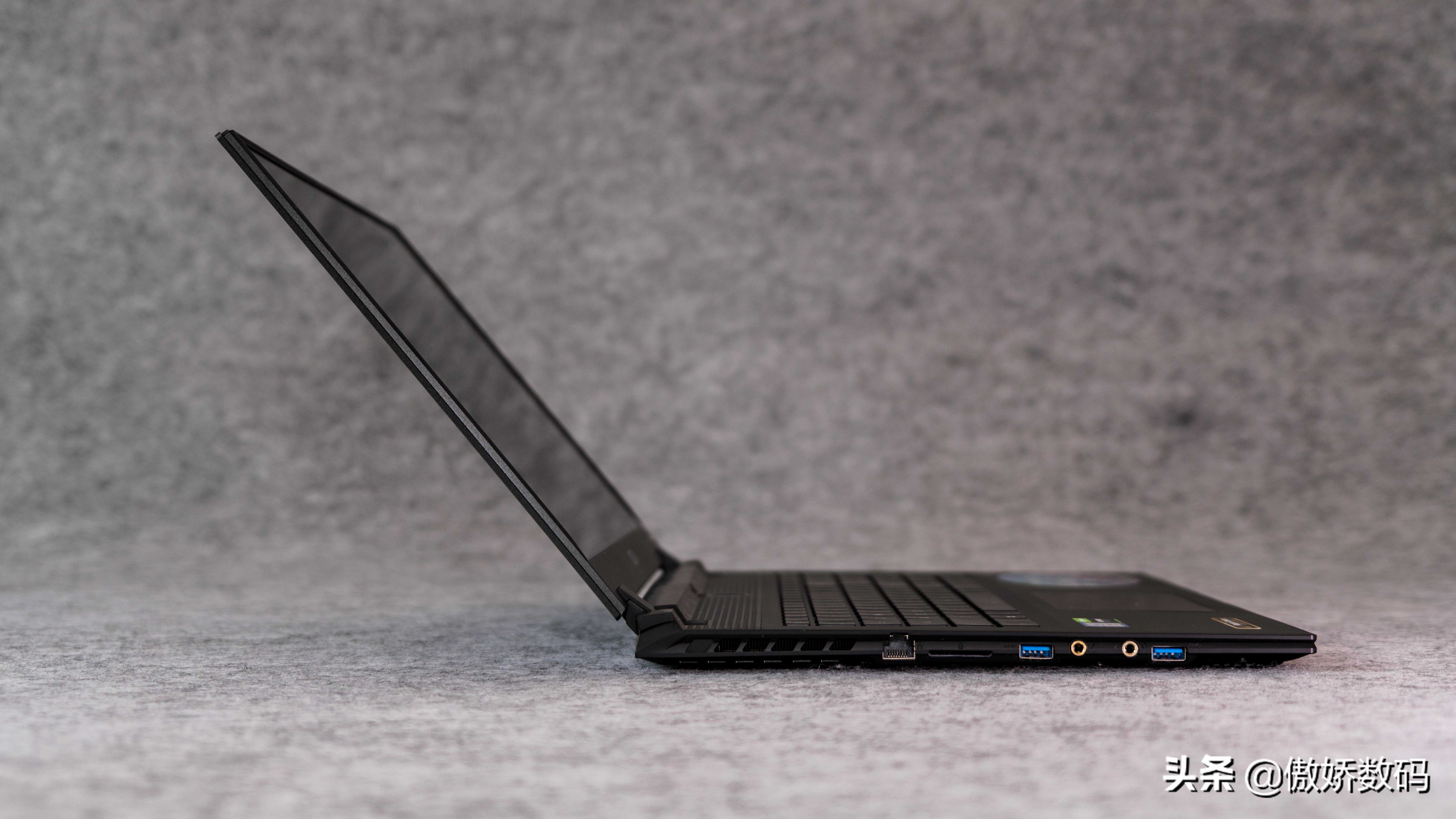 厚度的差距也没有想象中那么大,然而虽然三围差别不大,但AERO内部的散热模块和大容量电池这些决定了重量上不可能像gram那样轻,不过官方2.5kg的重量在游戏本中也算是苗条的身材了