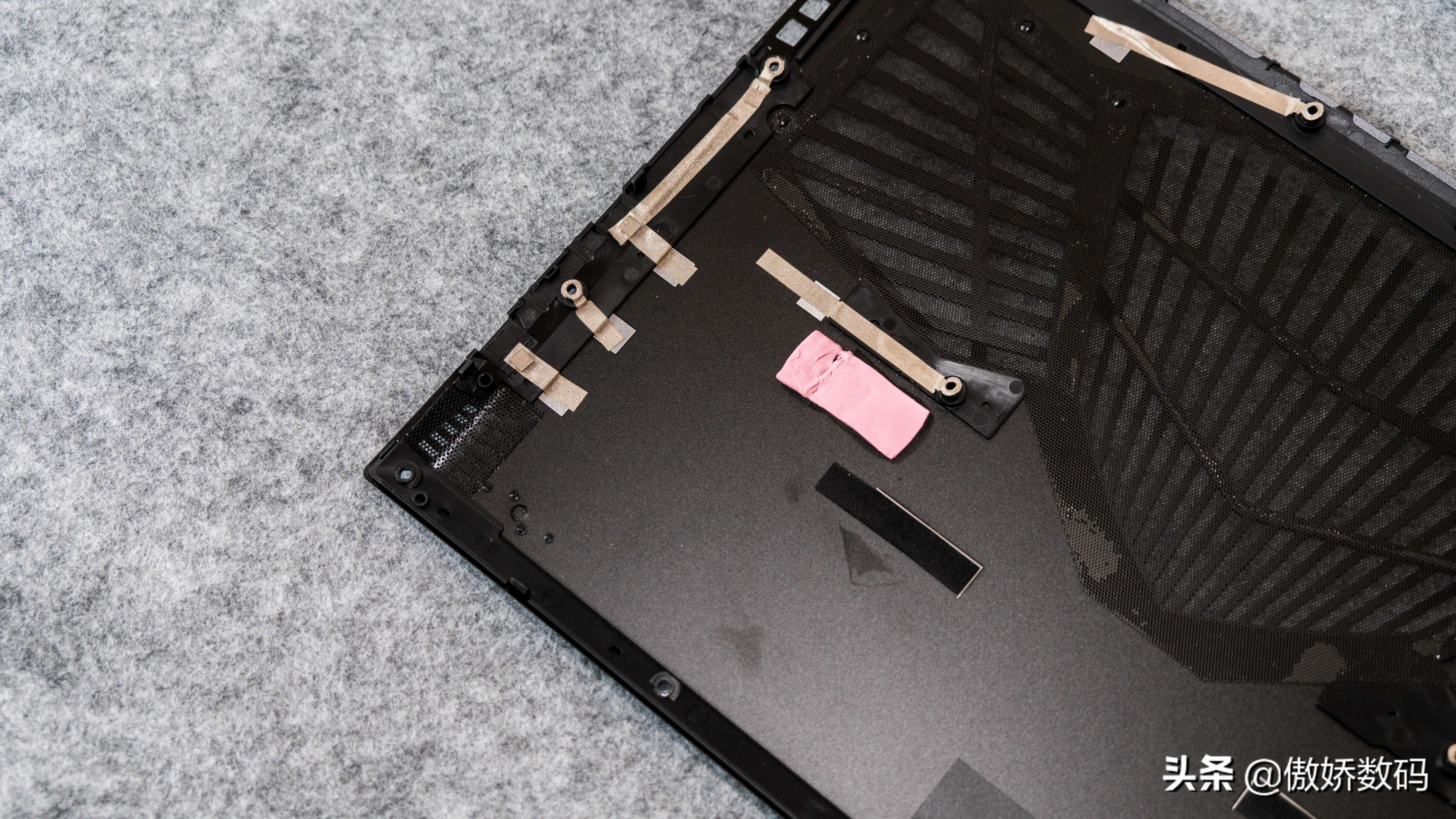 每个风扇下方都有大量的金属件来起到加固和屏蔽的作用,键盘上方的散热开孔也可以略微增加风扇的进风量