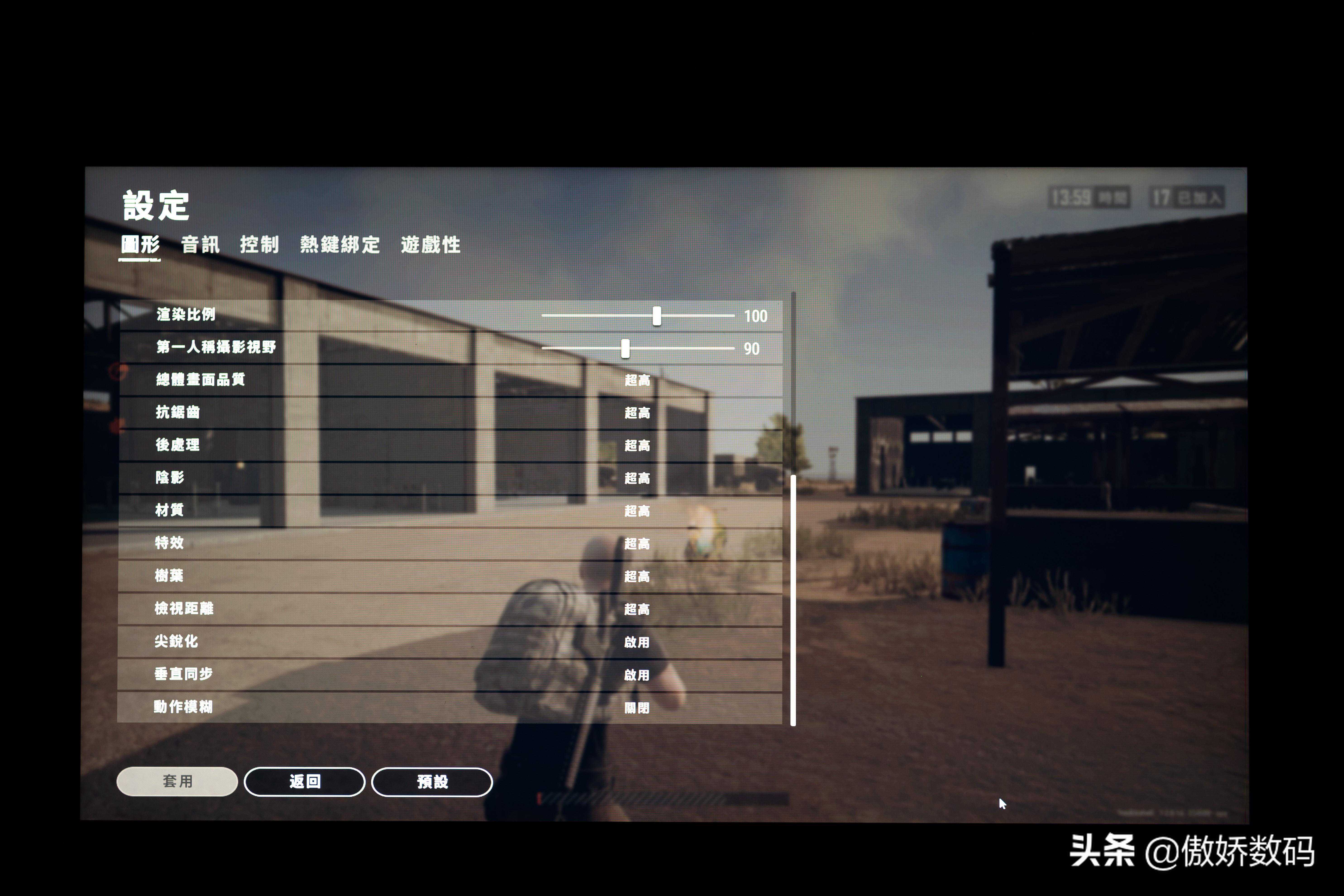 全部设置开到超高到吃鸡训练场里玩一圈,完全没有感受到任何卡顿,加上有144电竞屏助力,可以说是丝般顺滑的感觉了