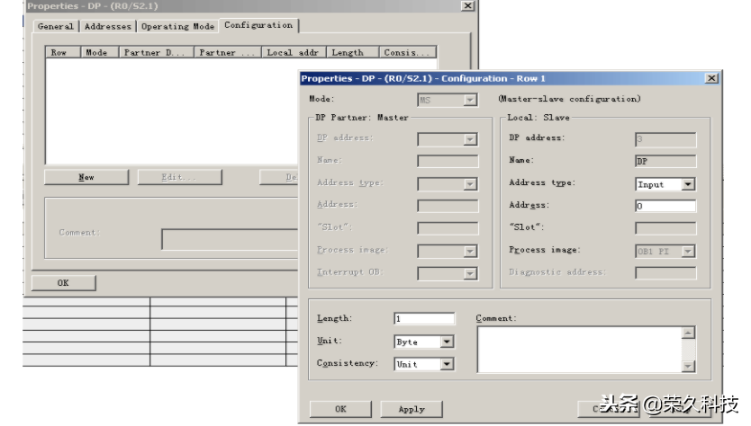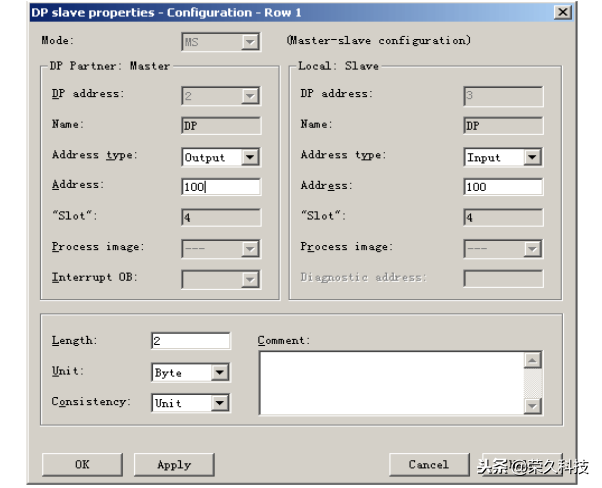 分别在“Length”、“Unit”、“Consistance”内写入输入/输出通讯数据的长度、长度单位及通讯形式