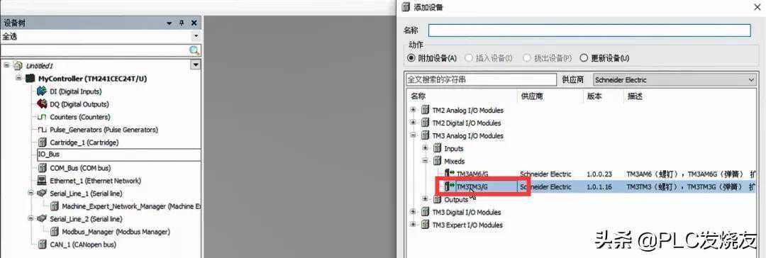 二:PLC参数设置第一步:新建好程序之后,在IO-BUS中添加设备TM3TM3。