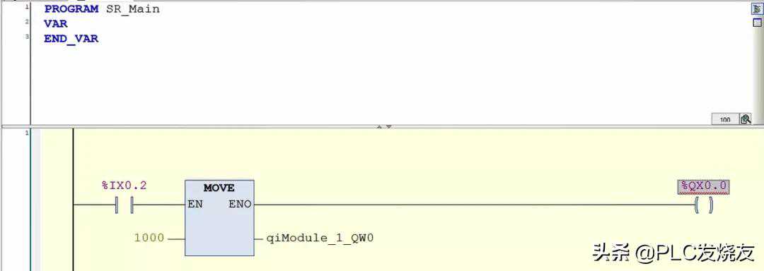 程序编写:把在IO映射中变量放到程序当中去,当触发I2时,电机就会以10Hz的频率运行。