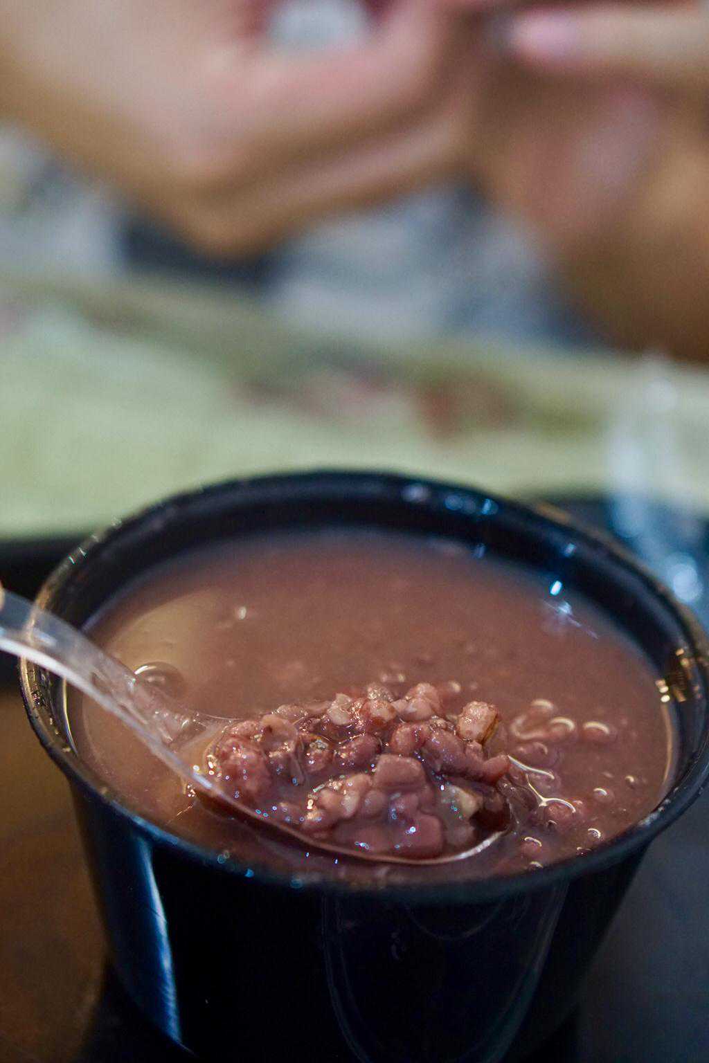 红豆薏仁汤热乎乎的感觉,红豆已经非常软烂,入口绵密,汤带有微微的甜味,熬的火候十分恰当
