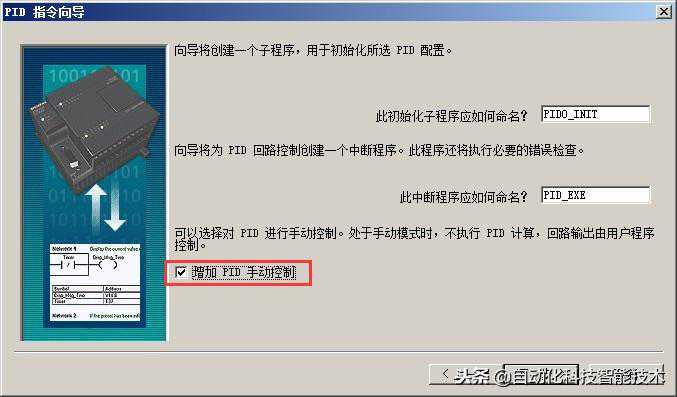 8、最后设置PID子程序的名字和是否增加手动控制.