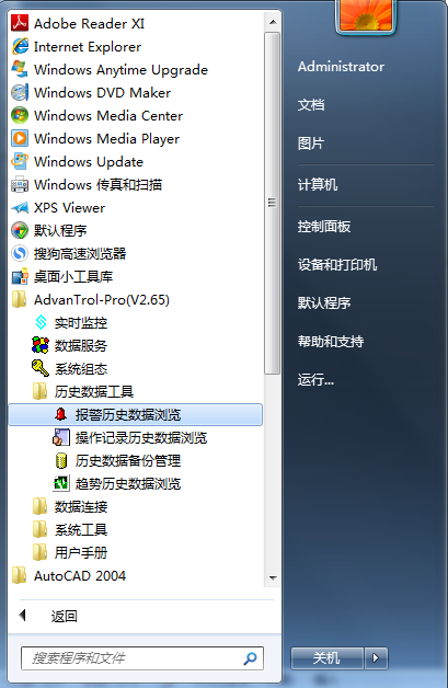 1.打开“开始菜单”---AdvanTrol-Pro---历史数据工具---报警历史数据浏览
