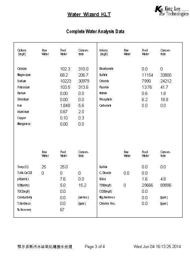 第二次取样(2013年12月)结果如下(反渗透浓水排放口):