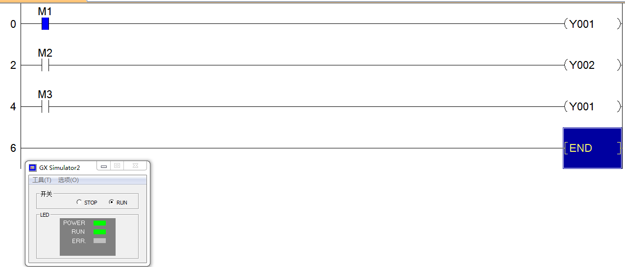 修改M1值为OFF状态,M3值为ON状态,发现Y1=ON。