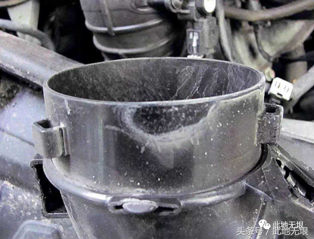 进气管道的固定卡扣出现松脱,上面明显的摩擦痕迹说明松脱的时间已经不短了。
