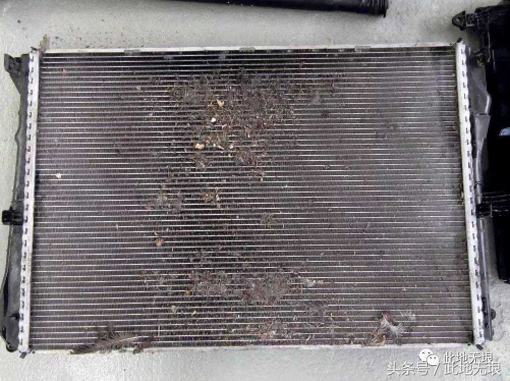 水箱散热器在两年后已经粘上了许多昆虫的尸体及外来的异物,难以清洁。