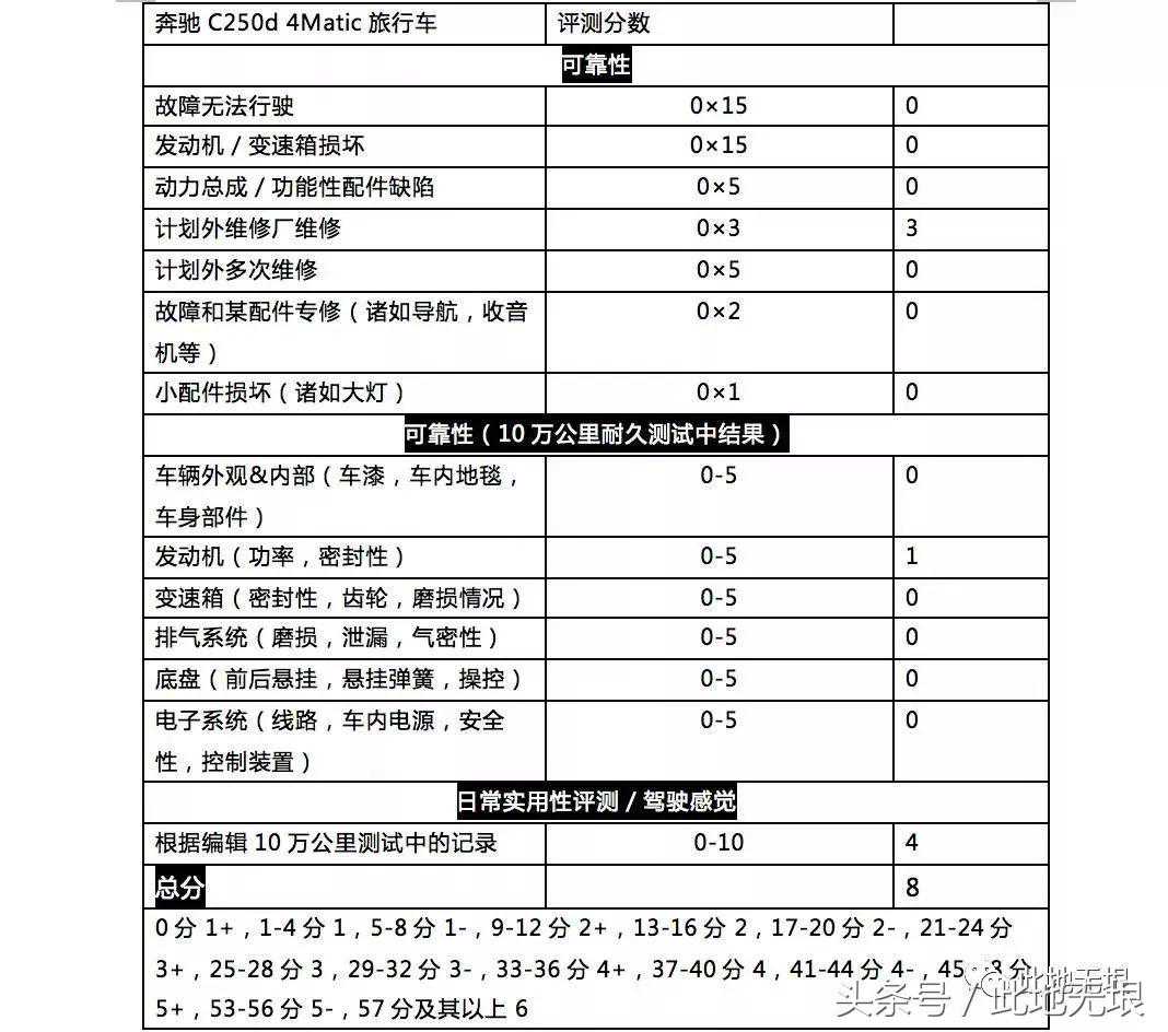 奔驰C250d4Matic旅行车10万公里耐久测试最终的得分为1-。