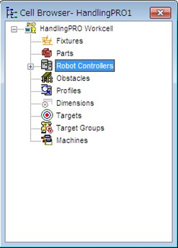 工作单元的所有元件(机器人,程序,部件等)以树结构显示在单元浏览器上。用户可以从单元浏览器访问这些元素。