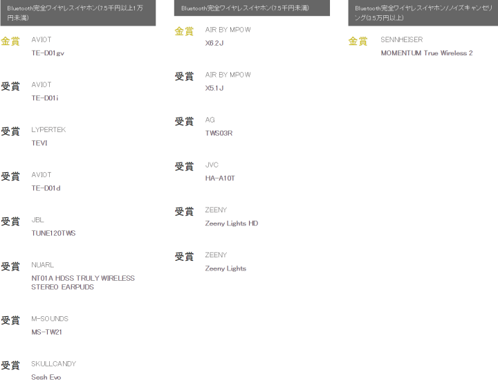 (山灵MTW100的动圈版本和动铁版本都有授奖,我个人很推荐,不仅有美艳外形,很高的音质,还具备环境声功能)