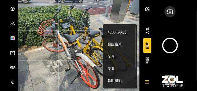 摄像部分的重头戏在后摄部分,realmeQ后置四摄规格分别为4800万像素主摄(f/1.7光圈)+800万像素超广角镜头(f/2.25光圈,119°±1.5°超广角)+200万像素微距镜头+200万像素人像镜头。支持4800万像素直出,默认模式仍旧为1200万像素,4800万模式需在设置中手动调节。