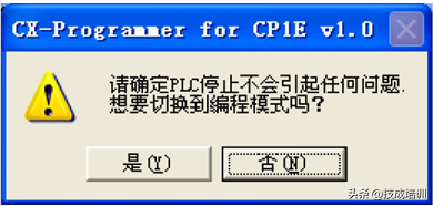 1在PLC菜单中选择“运行模式”(OperatingMode)-“编程”(Program)。将显示确认变更运行模式的对话框。如图2-37。
