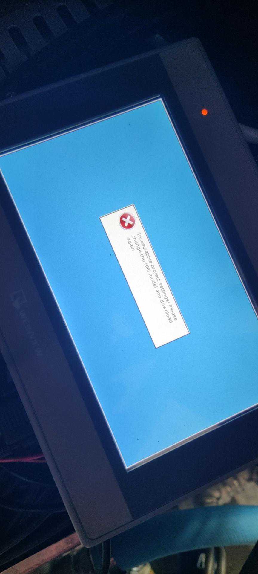A:核实参数设置是对的;最后排查到原因:程序中HMI型号选错,屏上报识别不了触摸屏型号的错误。