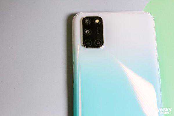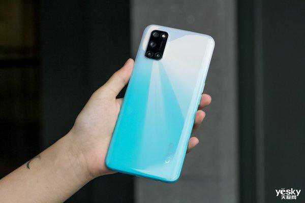 黑色像是沉静的极夜天空,而小编手上的这款星耀白仿佛闪耀的极地星河,轻轻变动手机角度,颜色也会随之改变。后置四摄设计与精心设计的闪光灯一起以“C”形星座阵列排布,几乎与手机长宽比类似的矩形将所有元素包覆其中;经典的简约款OPPOLOGO被安排在右下角。