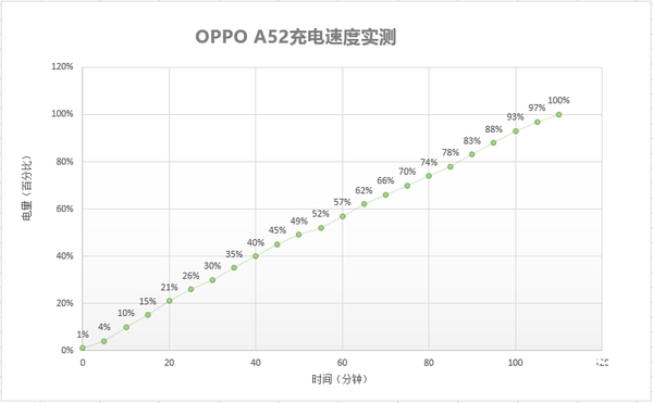 在实际体验中,小编将OPPOA52放电至1%,待静置10分钟后开始进行充电测试,30分钟电量可充至30%,90分钟可充至80%以上,这对于一款搭载了5000mAh大容量电池的手机来说,充电时间是在大家的接受范围内的;在OPPOA52的5000mAh大容量电池显示“充电完成”需耗费110分钟左右,表现力还可以。