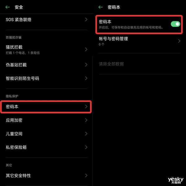 另外,OPPO在用户信息安全方面也做到最佳,利用多重数据防护,保证不同场景下的用户信息安全。例如的密码本功能,开启密码本功能,ColorOS将会在首次登陆后保存账号和密码,再次登陆时,我们只需要选择账号,密码就可自动填充,并且这项功能的加密系数极高,单独划区加密存储不必担心密码被读取或泄露。