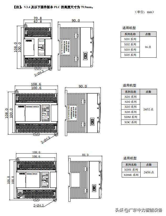 信捷PLC-XD系列产品尺寸