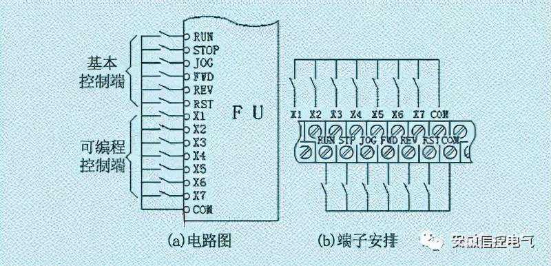 如运行、停止、正转、反转、点动、复位等。这些端子的功能是变频器在出厂时已经标定的,不能再更改。