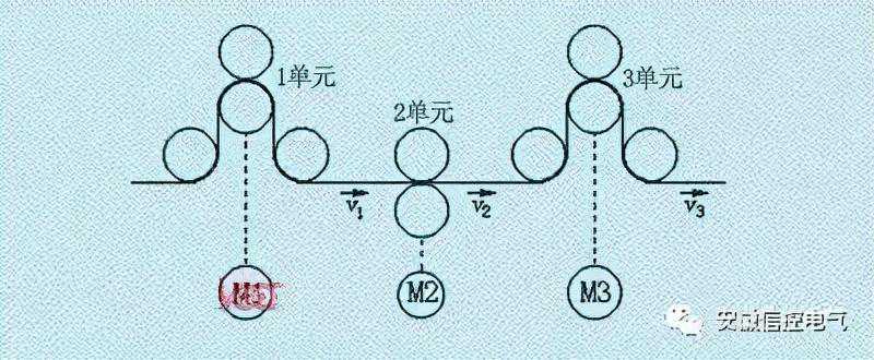 显然,如果后面单元的线速度低于前面,将导致被加工物的堆积;反之,如果后面单元的线速度高于前面,将导致被加工物的撕裂。因此,要求各单元的运行速度能够步调一致,即实现同步运行。