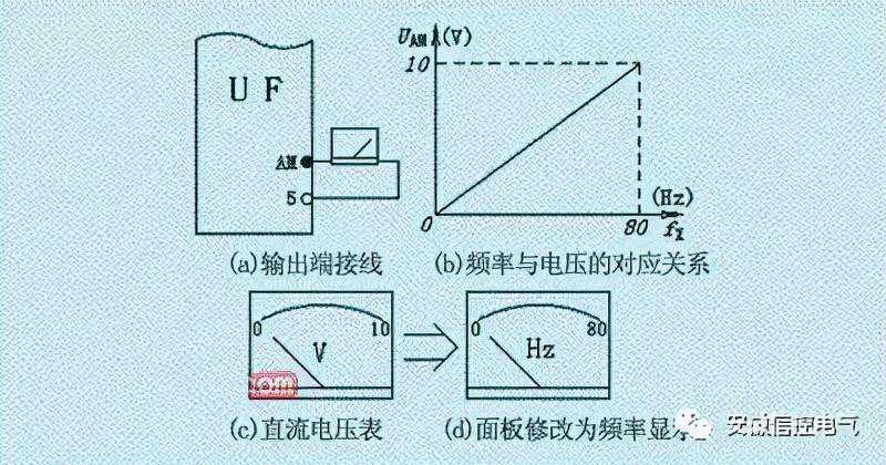 因为AM端的输出电压范围是0~10V,所以,只需购买量程为10V的直流电压表即可。但须将面板修改为0~80Hz,如图15(c)和15(d)所示。