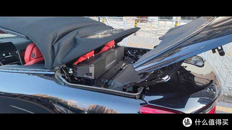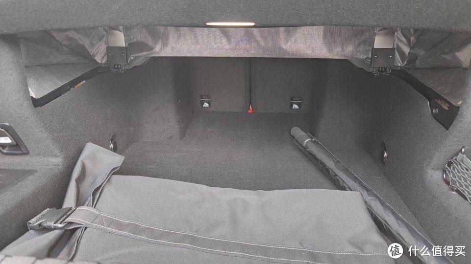 销售都不知道怎么收起这个,还是我自己看说明书看懂的,推进去就不能开敞篷了,但是空间会大很多,左右两边的拉手是放倒后座用的。