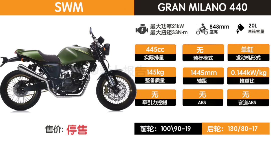 为啥说高金GK500咖啡版R,是国产500级CAFÉRACER独苗。其实这个排量区间之前是有CAFÉRACER车型的,像SWMGM440就是一款味道纯正的CAFÉRACER,但早已停售。目前来看500级CAFÉRACER车型中,也就高金GK500咖啡版R算是味道较为纯正的CAFÉRACER。也许还会有其他厂家的500级同类车型,但就现状来看还是高金更可靠一些。